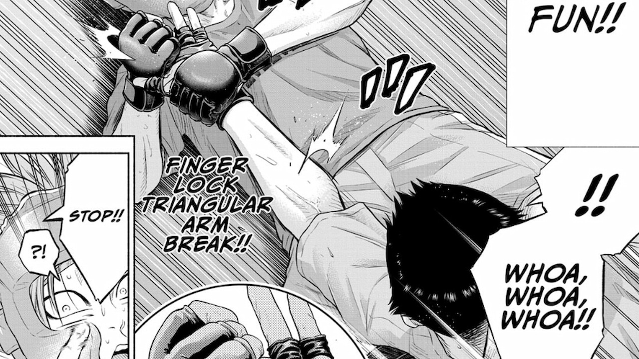 I am truly impressed by the recent sequences in this series, especially the fighting scenes in the third chapter which are incredibly intelligent. However, to fully comprehend the series, one needs to possess a significant amount of technical knowledge, especially if they fail to pay attention to each panel. Additionally, the previous chapters contain a clever series of hints revealing Asumi’s grandfather’s exceptional knowledge, which Asumi lacks. It’s entertaining to see the early setup of various elements, such as Nito’s bloodlust and the contrasting rules between Jiujitsu and MMA, making martial arts manga such a joy to read. Overall, this series is highly rewarding for those who take the time to examine it closely.