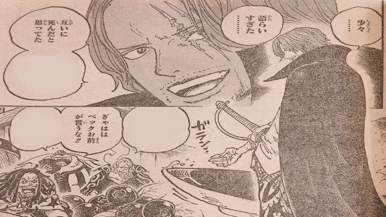 - The chpater ends with Shanks walking toward the coast with other captains cheering for him…